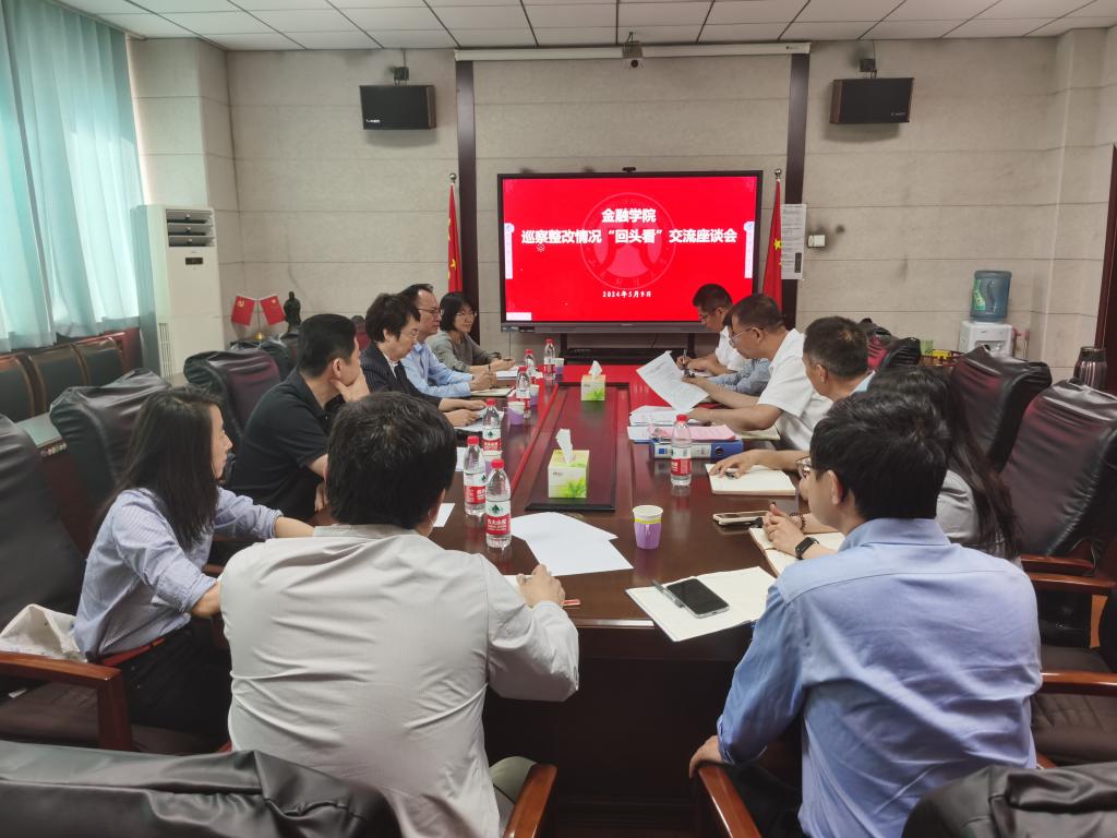 5月9日下午,党委巡察整改“回头看”工作组与金融学院党委领导班子开展座谈交流,座谈会由学院党委书记吴红文主持。