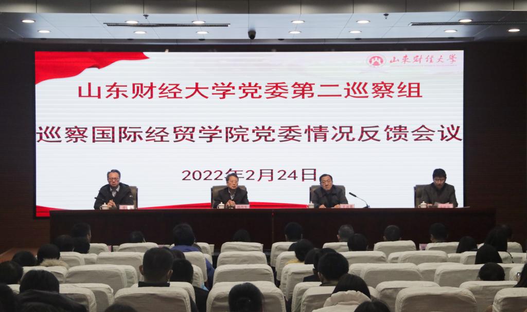 2月24日下午,学校党委第二巡察组向国际经贸学院党委反馈巡察情况。学校党委巡察工作领导小组副组长韩作生出席会议,对巡察整改工作提出要求。学校党委第二巡察组组长王洪勇代表学校党委巡察组反馈了巡察情况。国际经贸学院党委书记徐世星主持会议并就做好巡察整改工作表态发言。