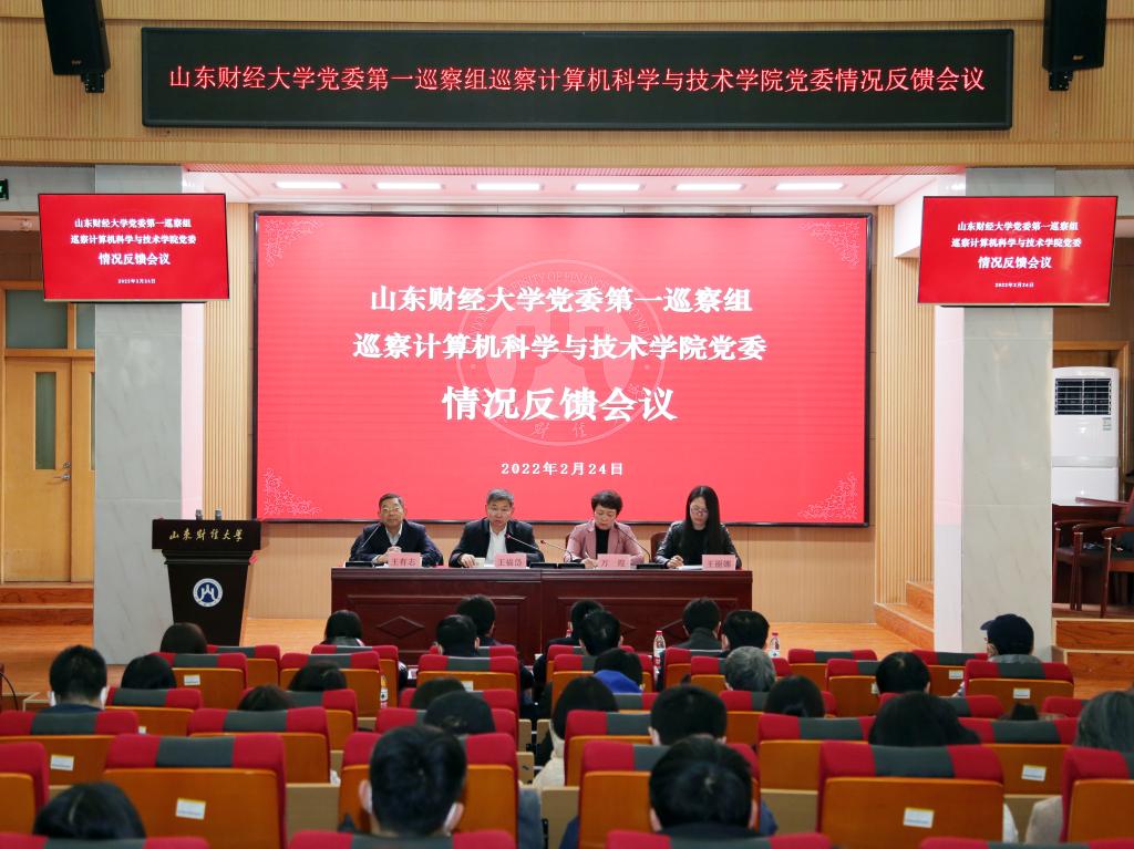 2022年2月24日,按照学校党委第一轮巡察工作部署, 2个党委巡察组分别向经济学院、国际经贸学院、工商管理学院、计算机科学与技术学院4个被巡察学院党委反馈了巡察情况。学校党委副书记、党委巡察工作领导小组副组长韩作生,学校党委委员、纪委书记、省监委驻学校监察专员、党委巡察工作领导小组副组长王福岱出席会议并讲话。